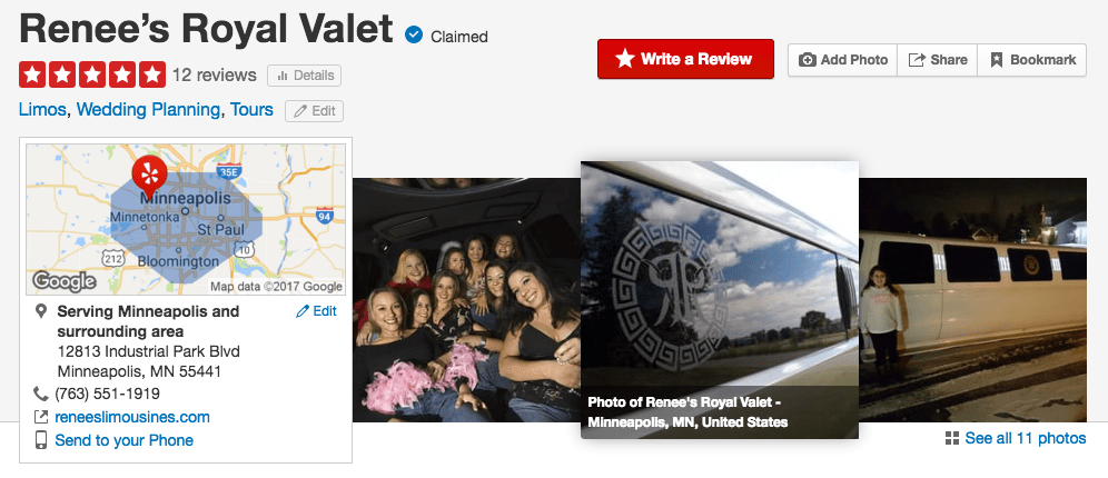 We have similar rave reviews on Yelp!, where we are also rated five stars: