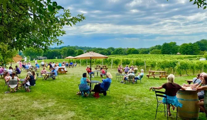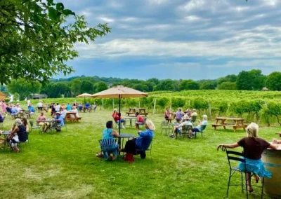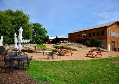 Here you will enjoy a flight of wine and take in the views of our 6-acre vineyard. You’ll have the opportunity to stock up on our Schram Vineyards wine, nibble on some small bites, and snap some photos among our cold, hardy grapevines. Craft Schram Haus beer is also available for purchase at this location.